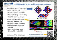 The new COBRACOMP braid architecture will go beyond standard triaxial braiding with a multilayer assembly with more axial yarn, more fibre fraction, more homogeneity leading to higher mechanical performance.